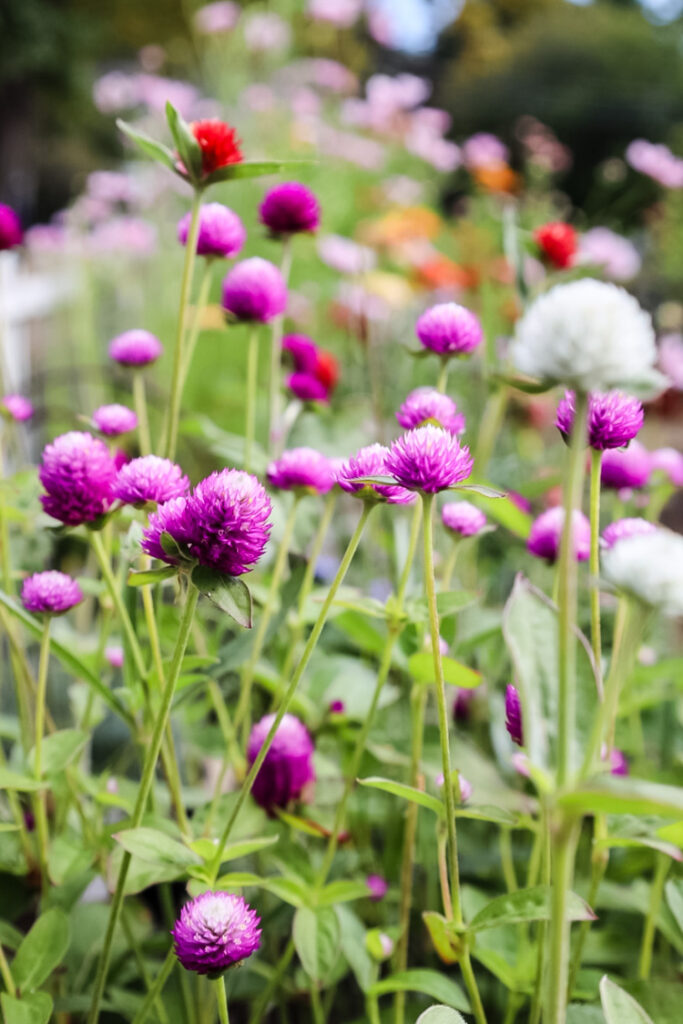 Gomphrena had an absolutely banner year. If you’re not growing gomphrena, I really want to convince you to start. Those cheerful, clover-like globes in deep magenta, soft pink, and bright red are some of the most reliable, heat-tolerant flowers you can put in a cutting garden, and they just keep going all season, no matter how hot or dry it gets.