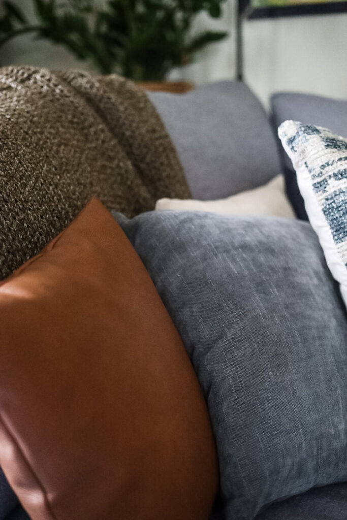 - Textiles: Fold up any Halloween-themed throws and store the bright orange pillows. Introduce chunky knit blankets in cream or grey and linen pillows in neutral tones. This instantly softens your living space. (I have a few affordable pillow cover choices curated)