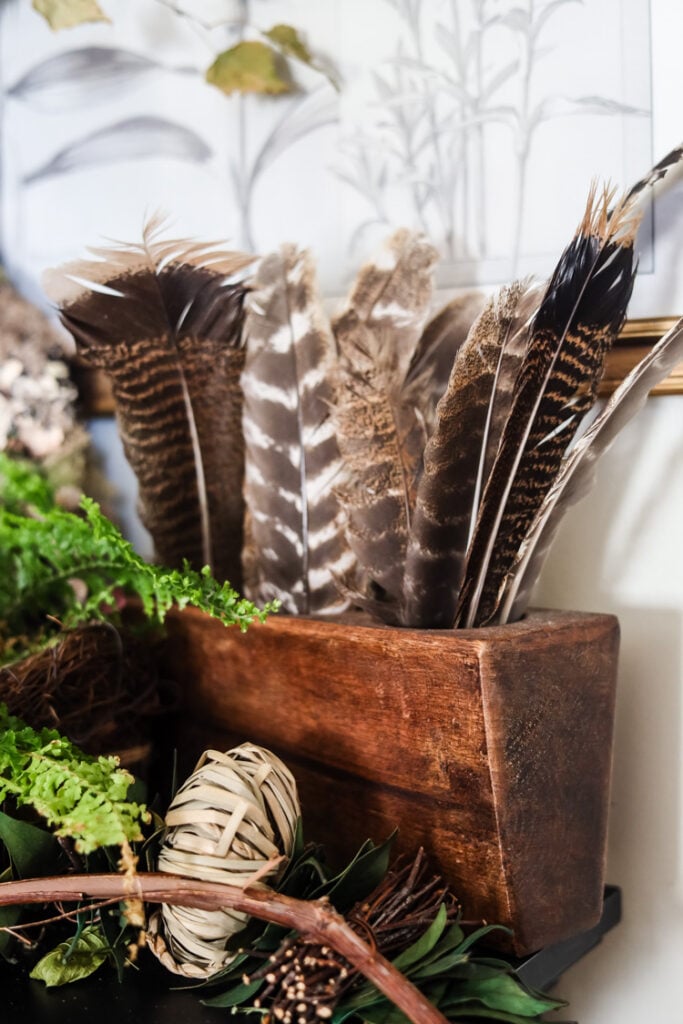 I have to say that I absolutely loved my witchy Halloween mantel theme this Fall! It was so much fun to put together. But now it’s time to pack away the mossy witch hat & crystal ball for another year.