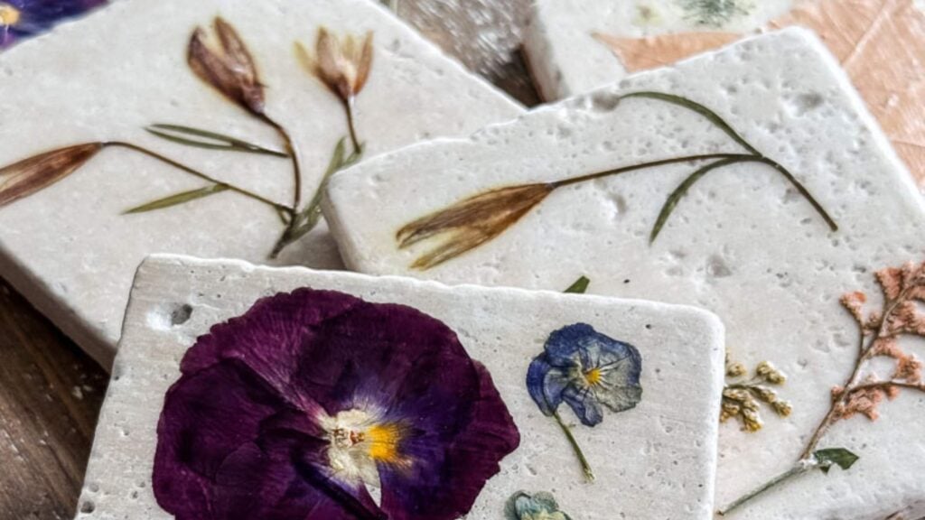 Garden to Home: Pressed Flower Coasters on Travertine Tile